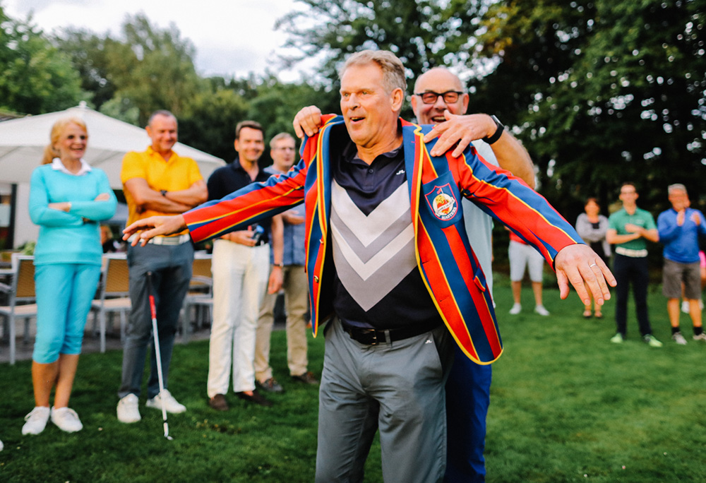 Kein Masters ohne Champions Jacket! Deswegen wird der Sieger des Bönnsch em Hätze- Masters mit dem rot-blau gestreiften Champions Jacket ausgezeichnet.